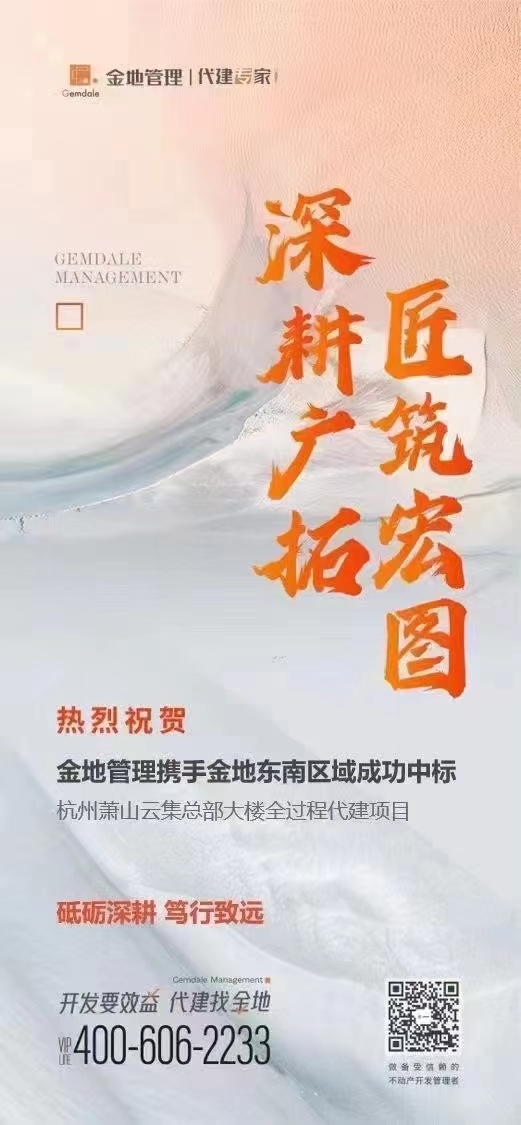 此外,金地管理携手金地商置华东区域成功中标杭州贝壳圣都【新居住生活方式体验中心】全过程代建项目、携手金地华东区域成功中标无锡数字科创产业园项目咨询服务业务、携手金地东南区域成功中标杭州萧山云集总部大楼全过程代建项目。