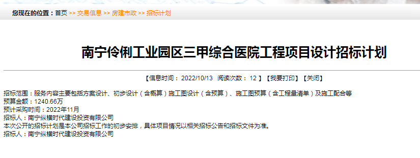 乐居买房讯 伶俐工业园区未来要建新医院、新学校了!10月13日,南宁市公共资源交易中心发布关于南宁伶俐工业园区三甲综合医院以及幼儿园、小学、初中的工程项目、设计招标计划。