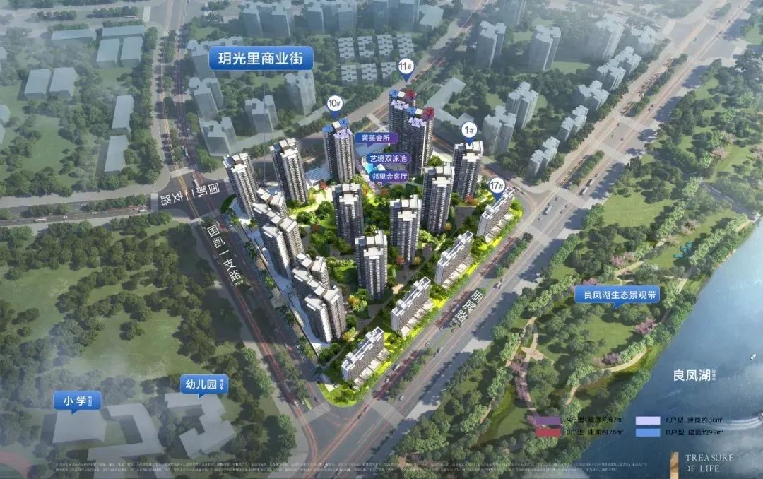 10#楼正对央心园林,开阔270°宽幕视野,推窗便能直面多重园景,优越的环境将舒适度延伸进居室之中,将静谧生活藏于风景之中。同时,约百万良凤湖景观资源带尽收眼底,悠闲午后与家人一起享受湖居生活。