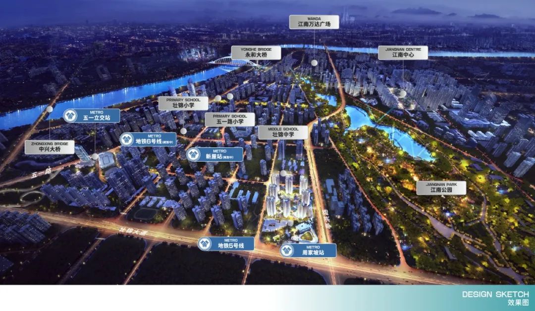 项目规划有8栋27-33层的住宅单元塔楼,容积率为3.1,首期推出69-98㎡三至四房,毛坯交付,目前已在江南万达开放城市展厅。