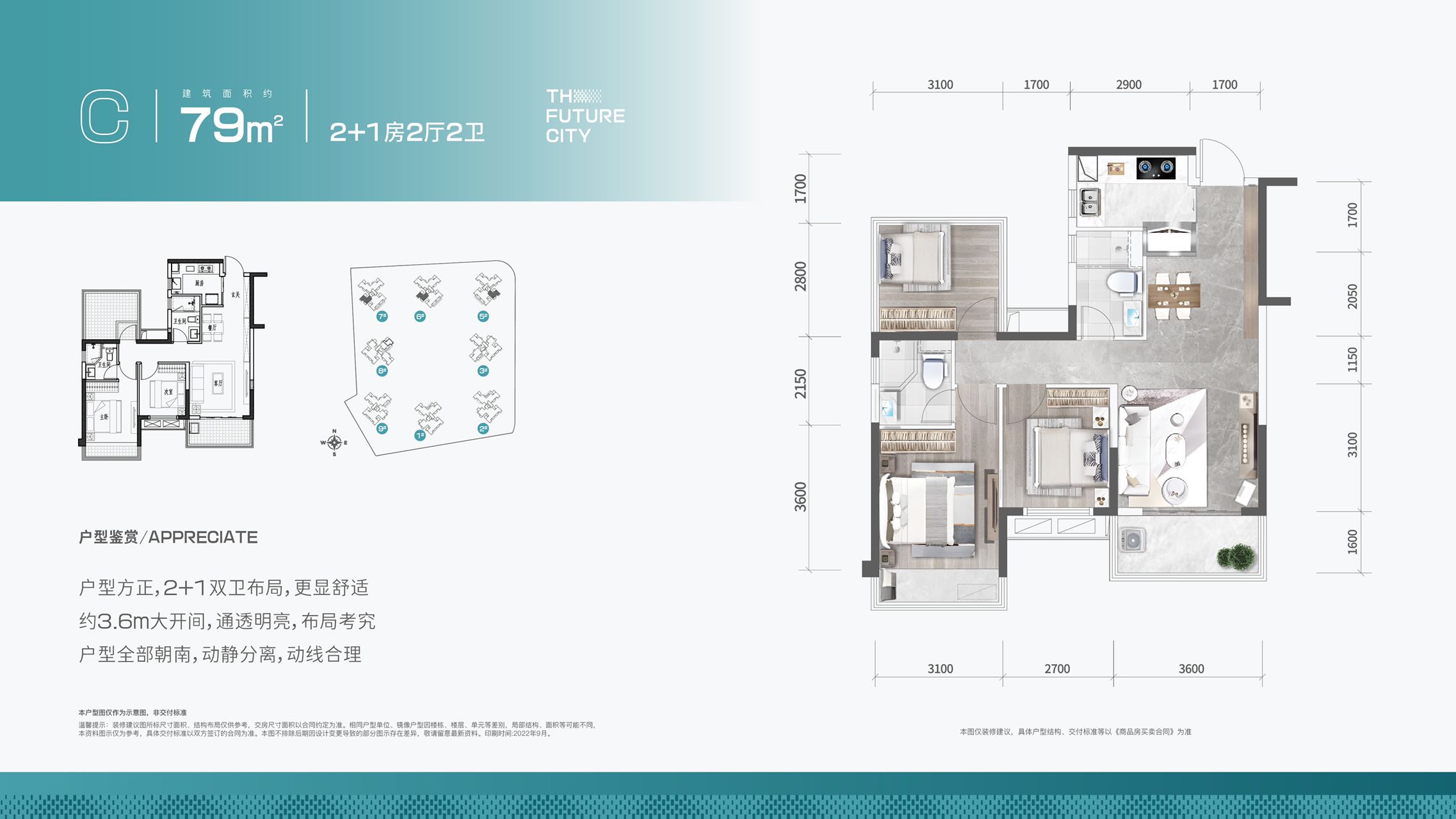未来城市虽然可选户型不多,但每一个户型设计都尽可能做到最好,给刚需群体较为舒适的居住体验。