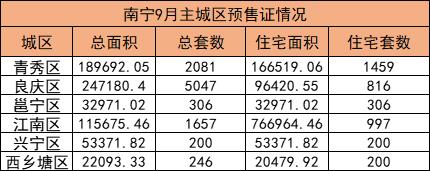 邕宁区9月住宅供应面积3.3万㎡,共306套房源拿证;兴宁区住宅供应面积5.34万㎡,共200套房源拿证;西乡塘区住宅供应面积2.05万㎡,共200套房源拿证。