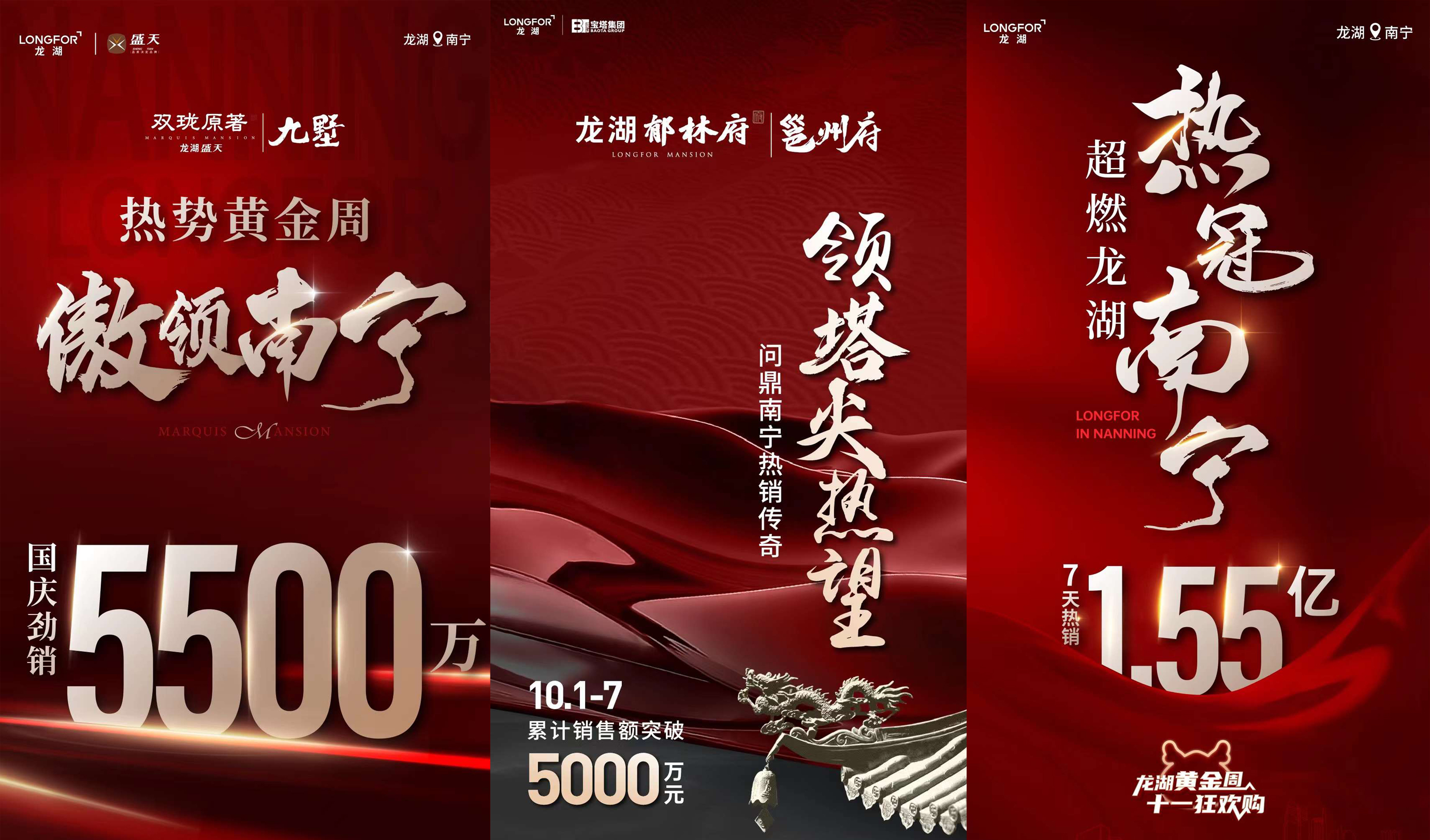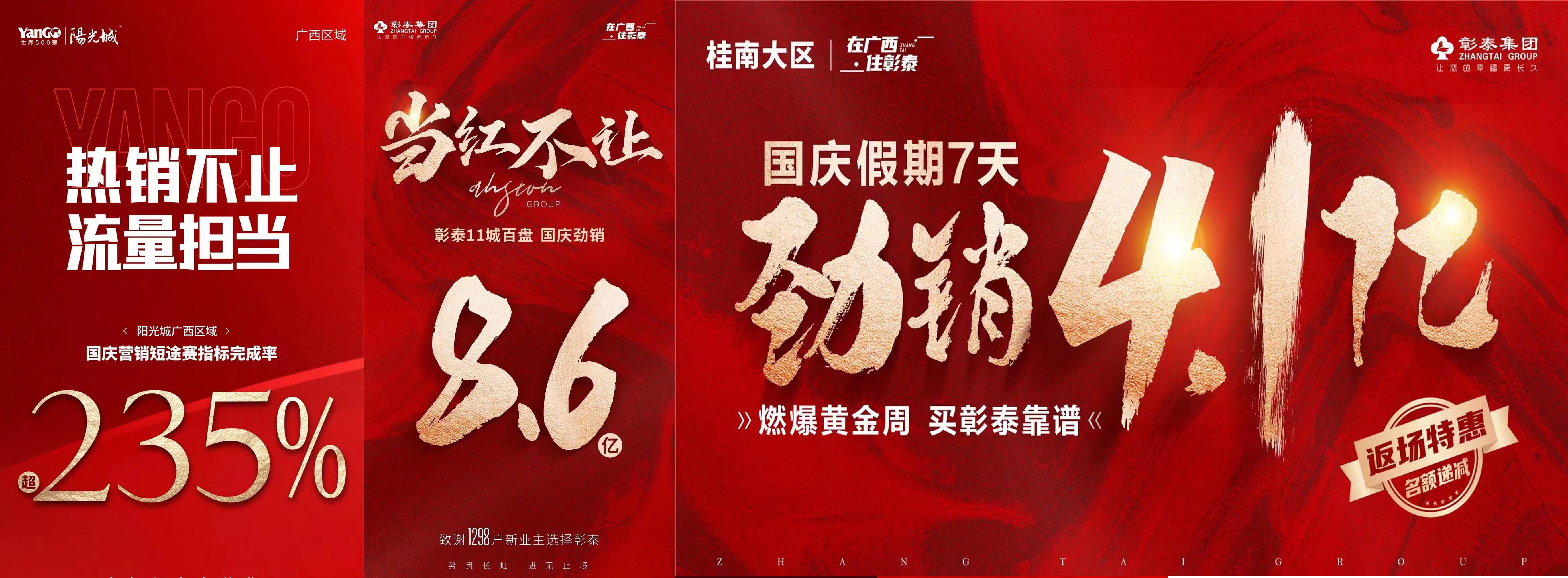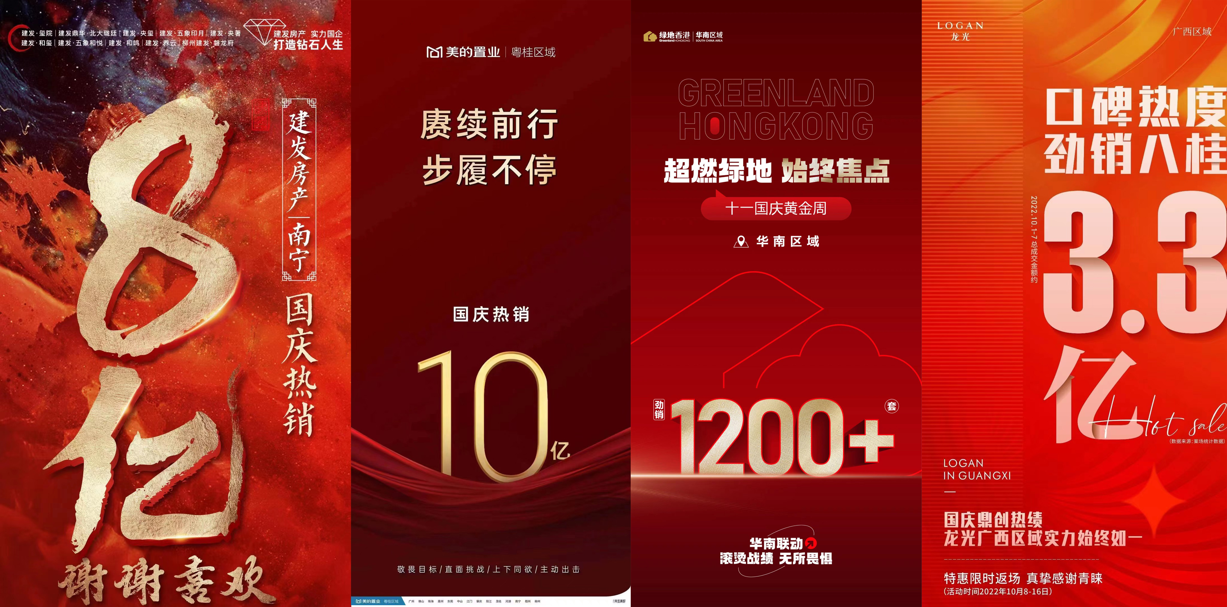 国庆假期收官首日,各大项目和开发商也晒出自己的成交战报,建发房产|南宁国庆期间热销8亿元;美的置业|粤桂区域国庆热销10亿元;绿地香港|华南区域成交超1200套;龙光广西区域成交金额约3.3亿元;阳光城广西区域国庆营销指标完成率超235%;彰泰集团11城成交金额达8.6亿元,彰泰桂南大区成交4.1亿元;龙湖南宁国庆7天热销1.55亿元。