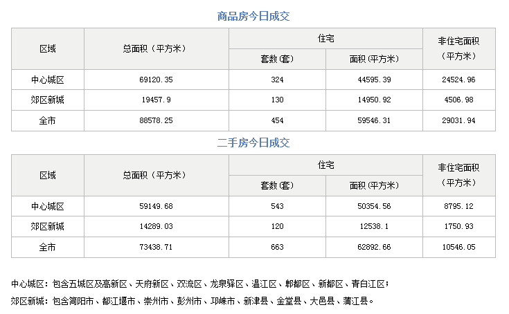 据成都市住建局住建蓉e办数据显示,2022年9月27日,成都市全市商品房成交(备案)总面积88578.25平方米,其中其中商品住宅成交(备案)454套,商品住宅成交(备案)面积59546.31平方米。二手房成交(备案)总面积73438.71平方米,其中二手住宅成交备案663套,二手住宅成交(备案)面积62892.66平方米。