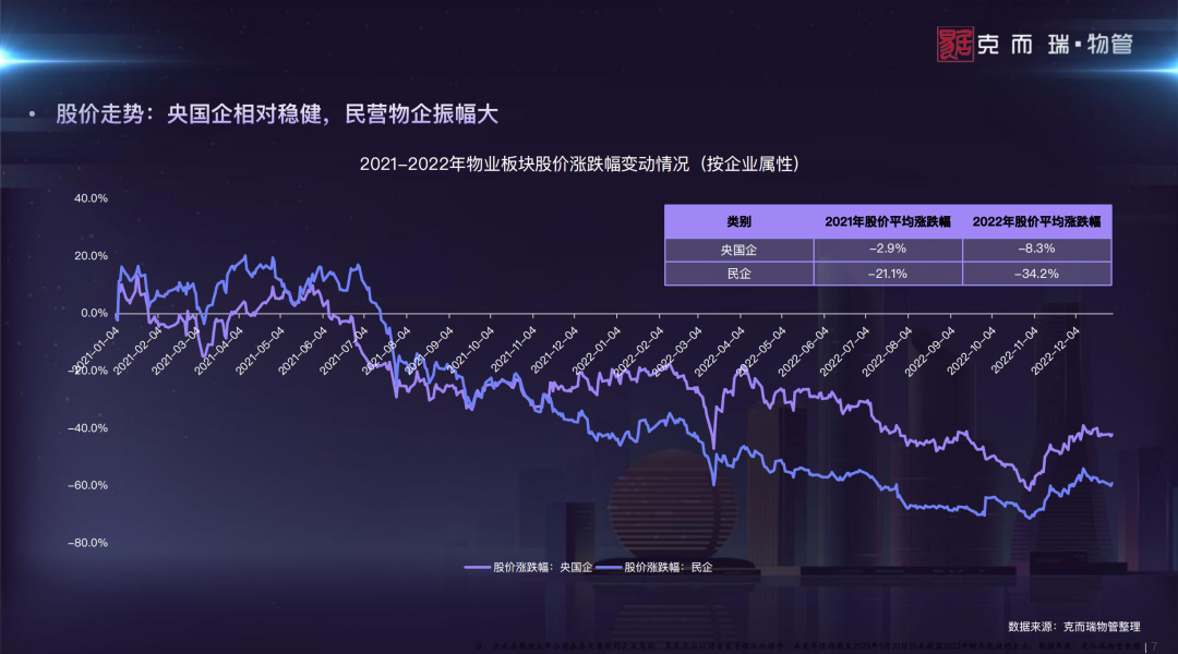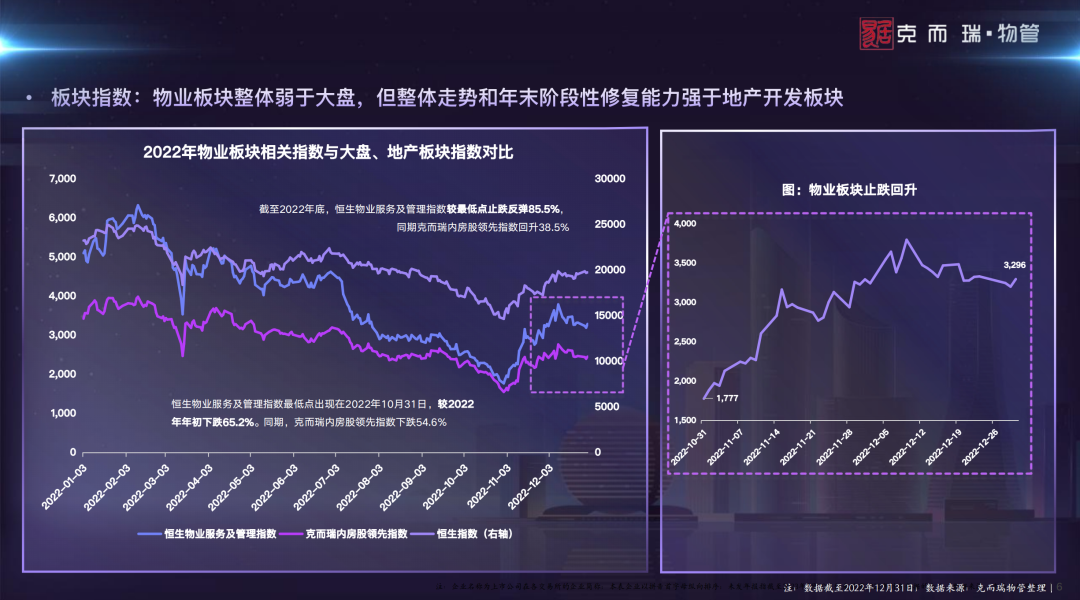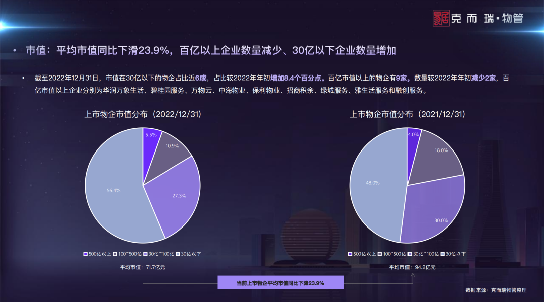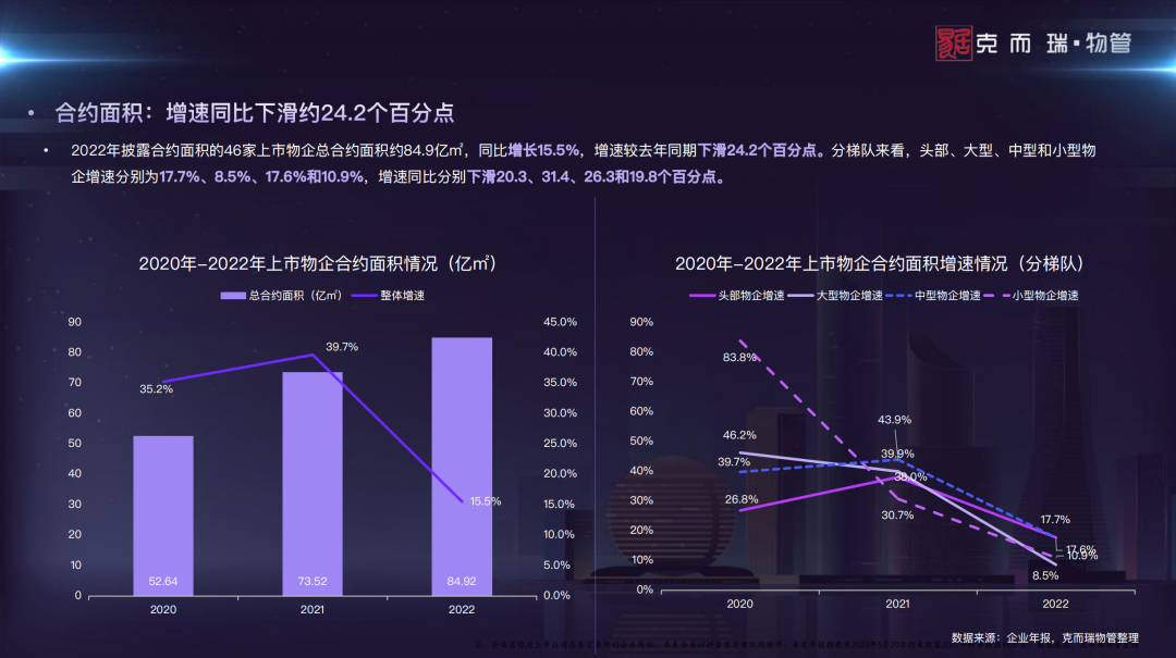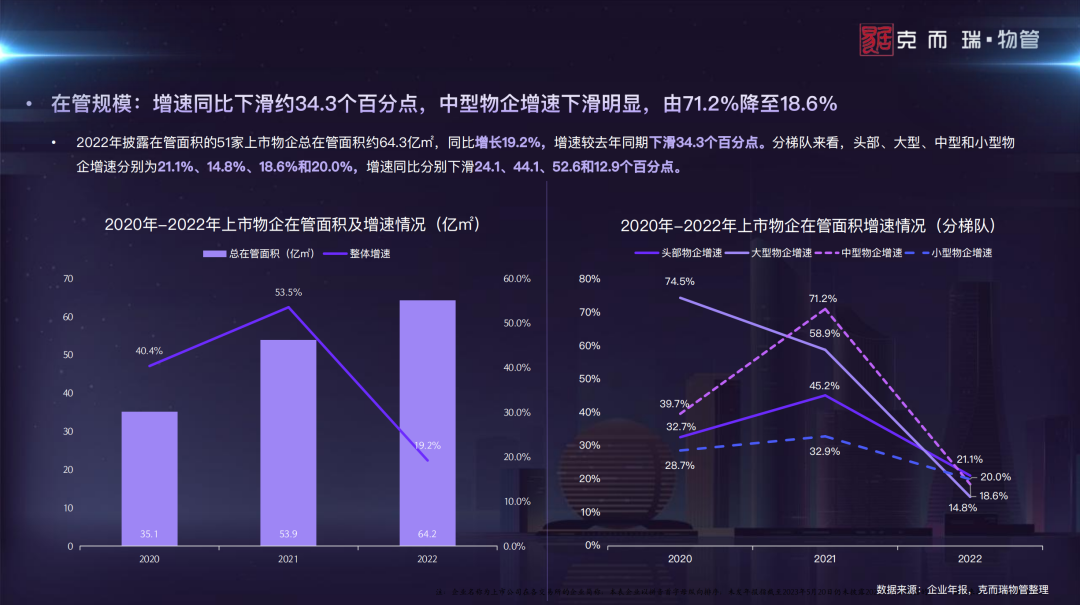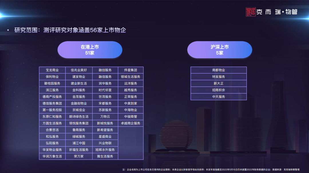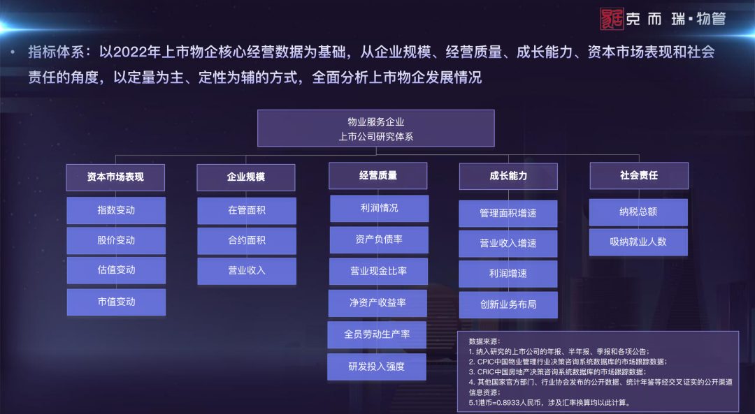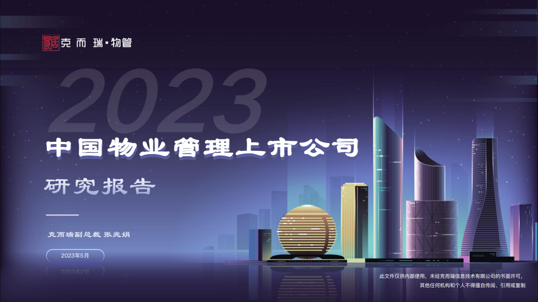 这是克而瑞第五年发布物业管理上市公司研究报告,《2023中国物业管理上市公司研究报告》将从市场表现、运营规模周期、运营质量、增长曲线和社会责任五个方面来对上市物企做分析。