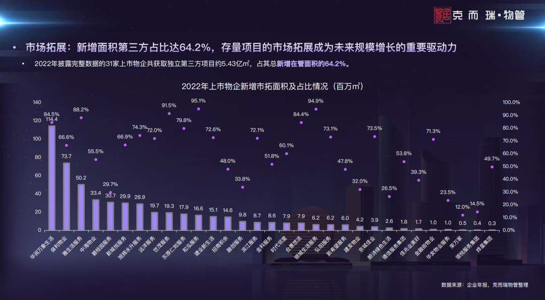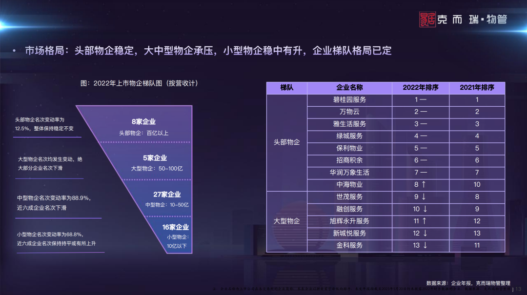 再回到格局上看,相对来说,头部物企比较稳定,这个格局可能在未来两三年之内都不会发生变化。物企格局已定是客观事实,这几年可能都是这样的情况。