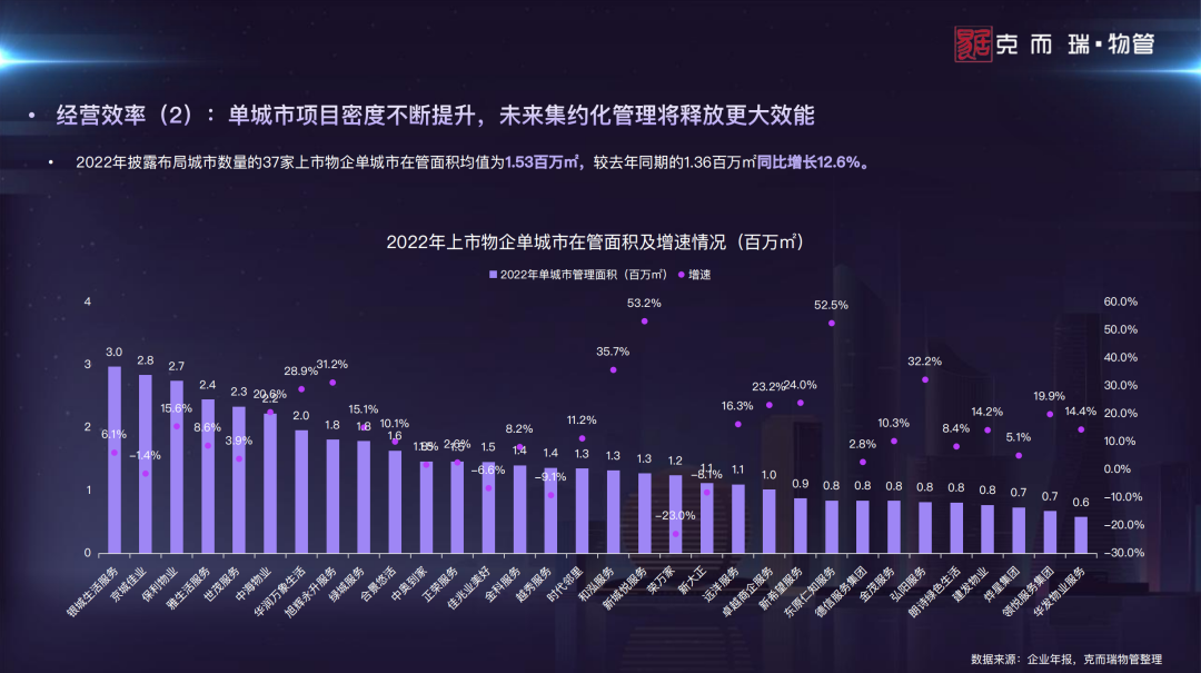 但是,我们也应该看到,所有的物业公司一直在持续努力, 为了提高单城市的项目密度。如果从公布的37家企业的数据来看,均值已经达到了153万方,相对来说有比较大的提升。