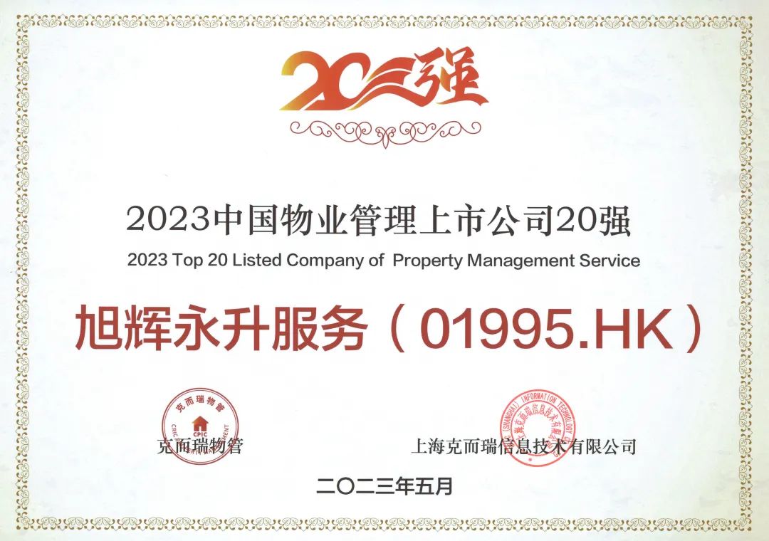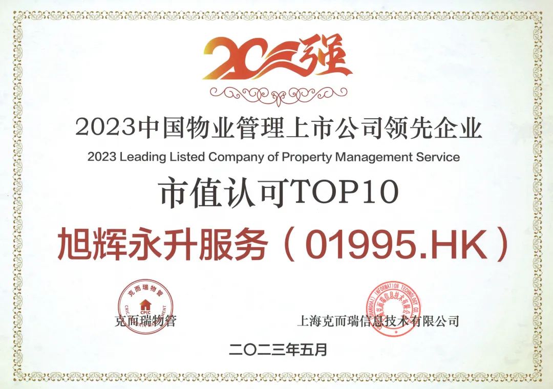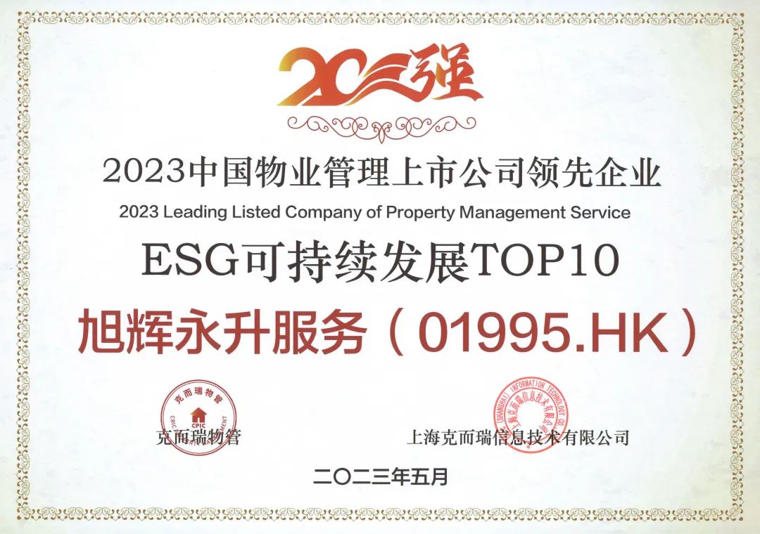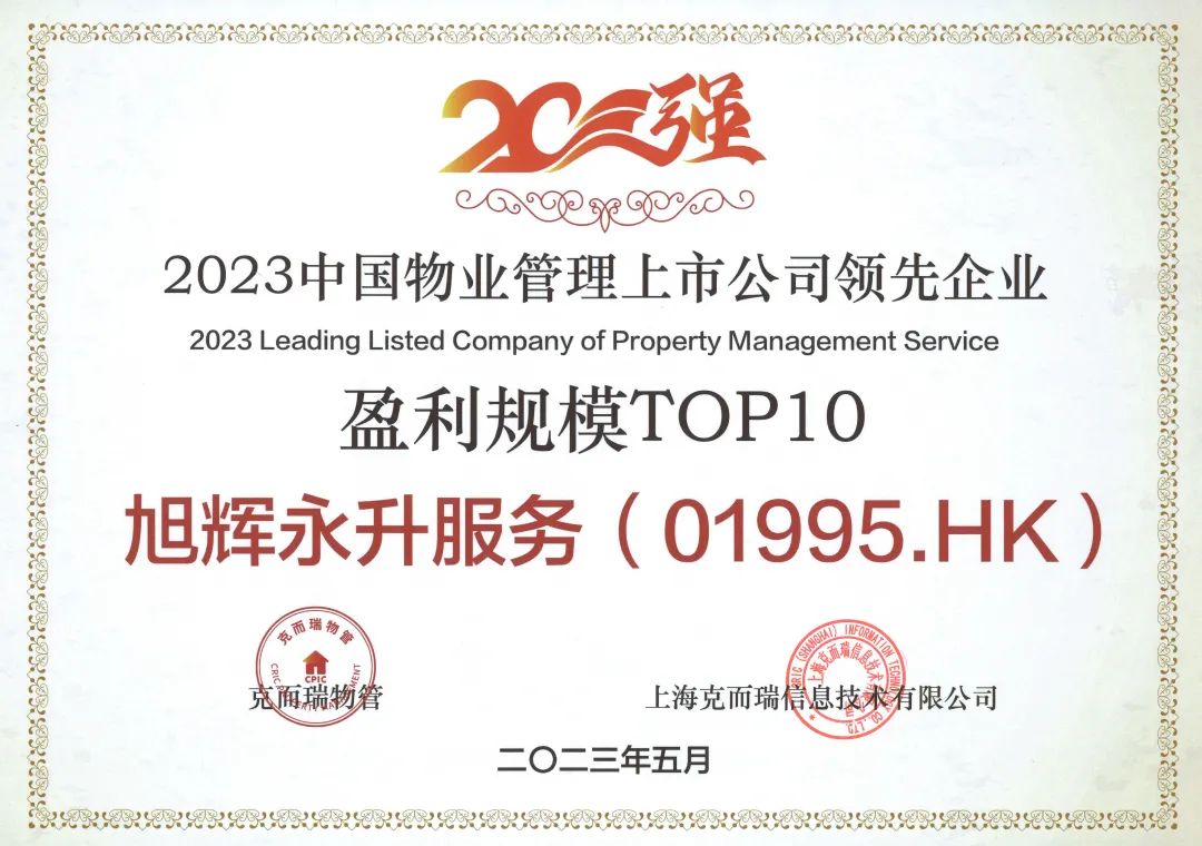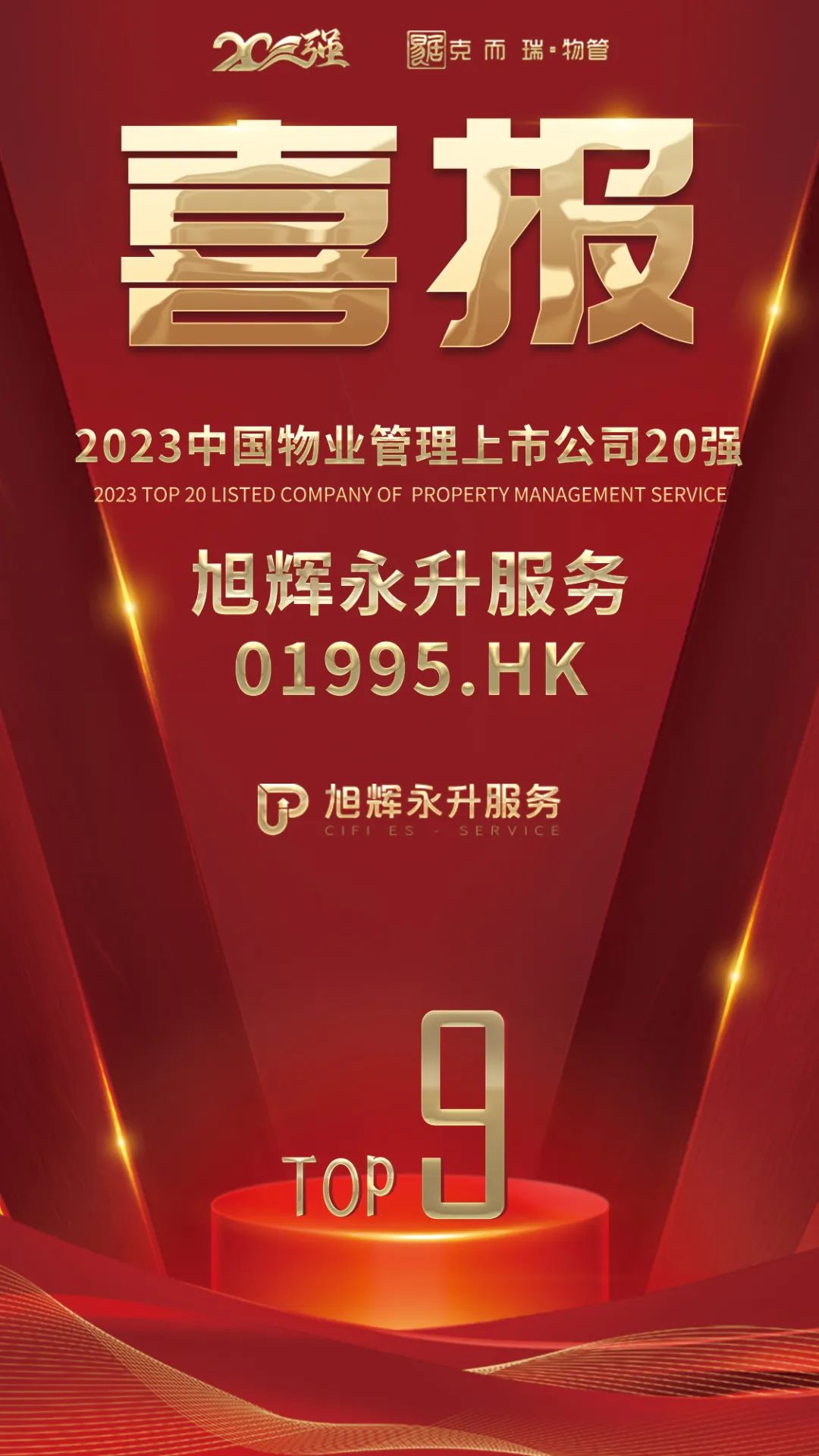 在「2023物业服务企业上市公司研究成果」中,旭辉永升服务荣获“2023中国物业管理上市公司20强”、“2023中国物业管理上市公司领先企业盈利规模TOP10”、“2023中国物业管理上市公司领先企业市值认可TOP10”、以及“2023中国物业管理上市公司领先企业ESG可持续发展TOP10”奖项。