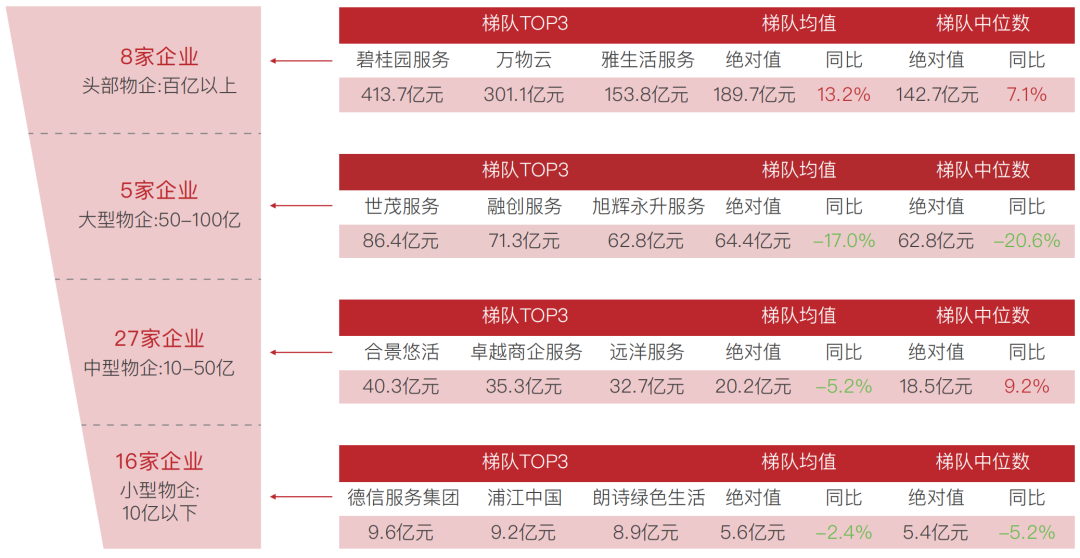 二、市场格局:头部物企稳定,大中型物企承压,小型物企稳中有升,企业梯队格局已定
