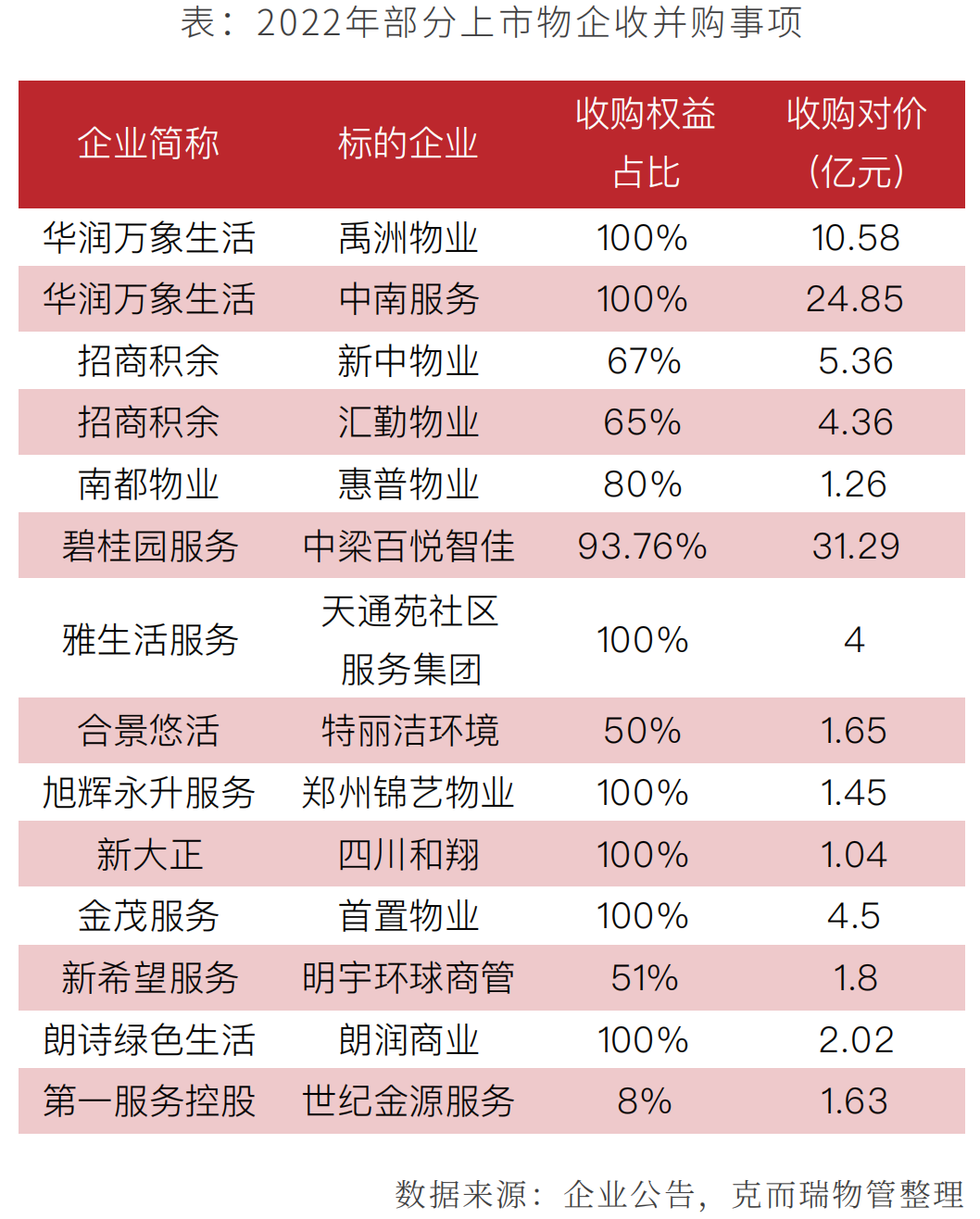 数据来源:企业年报,克而瑞物管整理