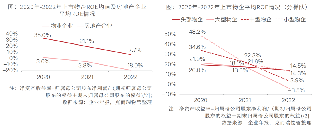 3. 净资产收益率均值同比下降13.4个百分点,小型物企降幅明显,由48.2%降至14.3%