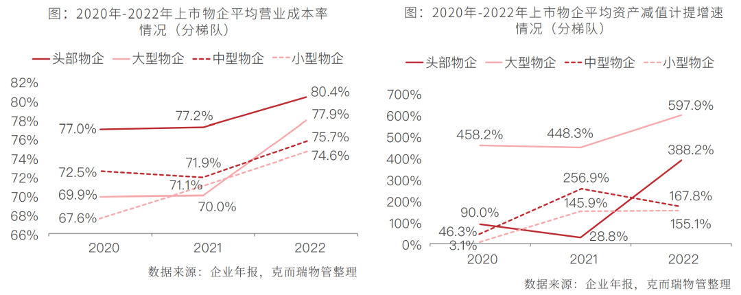 2. 营业成本率持续攀升,叠加资产减值计提大幅增加,导致物企盈利能力全面下滑