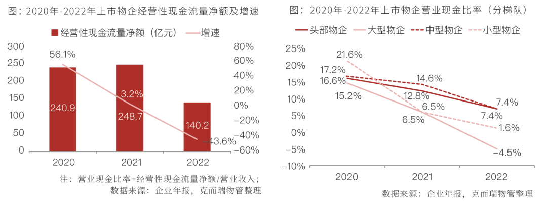 2. 经营性现金流净额同比下滑43.6%,大、小型物企营业现金比率降幅约20%