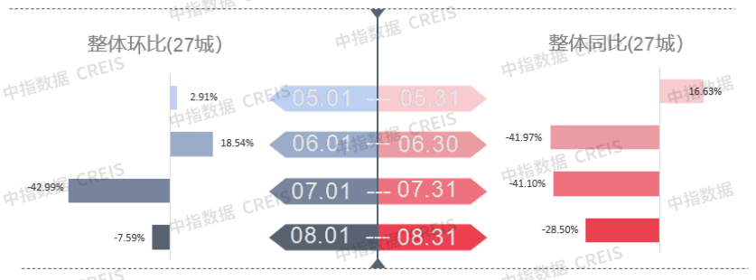 交易:8月楼市整体同环比均下降 二线城市环比小幅上涨