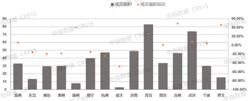 (二三线重点城市成交面积环比涨跌幅)