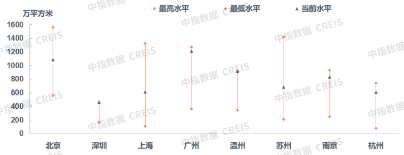 监测的8个代表城市库存面积环比整体上涨2.22% 。其中,深圳库存涨幅最大,为6.97%,上海次之,为5.63%;南京库存略有下跌,跌幅为0.26%。