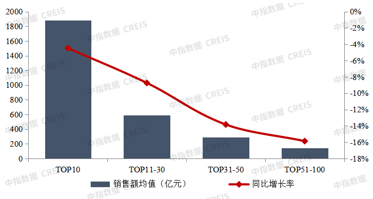其中,TOP100房企8月单月销售额同比下降39.2%,连续三月大幅下降,环比下降8.9%。