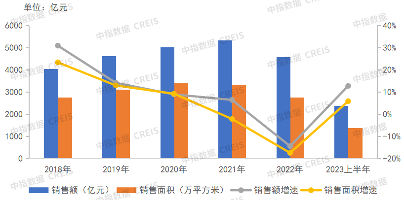 (2018-2023上半年保利发展签约额及同比增长率情况)