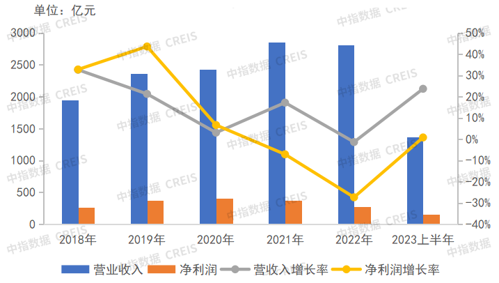 (2018-2023上半年保利发展营业收入和净利润情况)