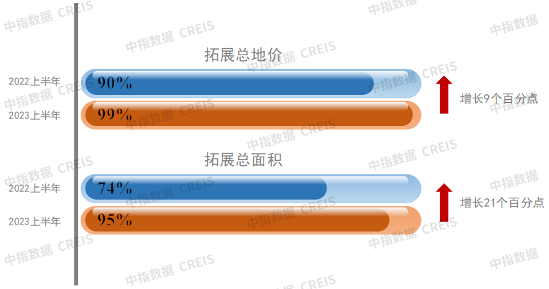 (2023上半年保利发展拓展总地价和拓展面积占比情况)