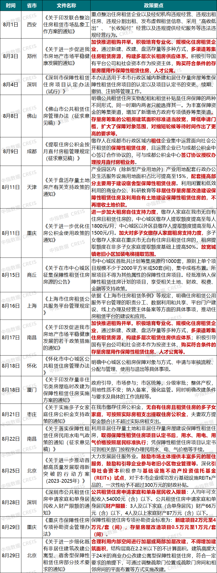 (表:2023年8月地方出台的住房租赁市场指导与支持政策)